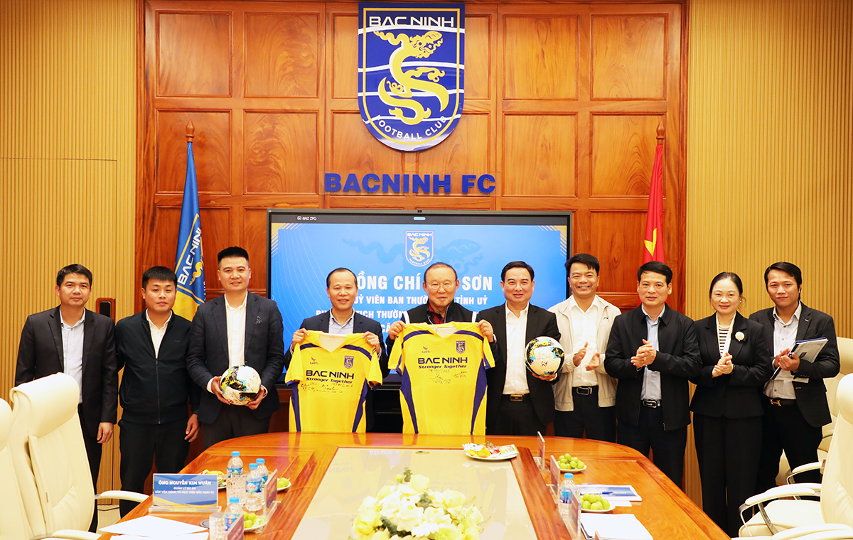 (BNP) - Chiều 14/1, đồng chí Mai Sơn, Ủy viên Ban Thường vụ Tỉnh ủy, Phó Chủ tịch Thường trực UBND tỉnh đến thăm và làm việc với Công ty Cổ phần Bóng đá Bắc Ninh (thôn Phù Xá, xã Văn Môn, tỉnh Bắc Ninh).
